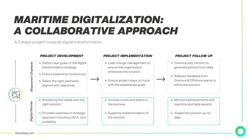 Once the direction is set, the focus shifts to execution. Crews and teams on board and onshore must be actively involved, ensuring the solution fits seamlessly into daily operations. Implementation support plays a vital role in overcoming resistance, solving technical hurdles, and embedding the new tools into workflows without disrupting operations. - Adoption and Change Management